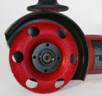 Red Round Medium Grit Disc for rapid removal with medium to fine finish on contoured or concave surfaces. Holey Galahad is engineered to "open a window to your work" -